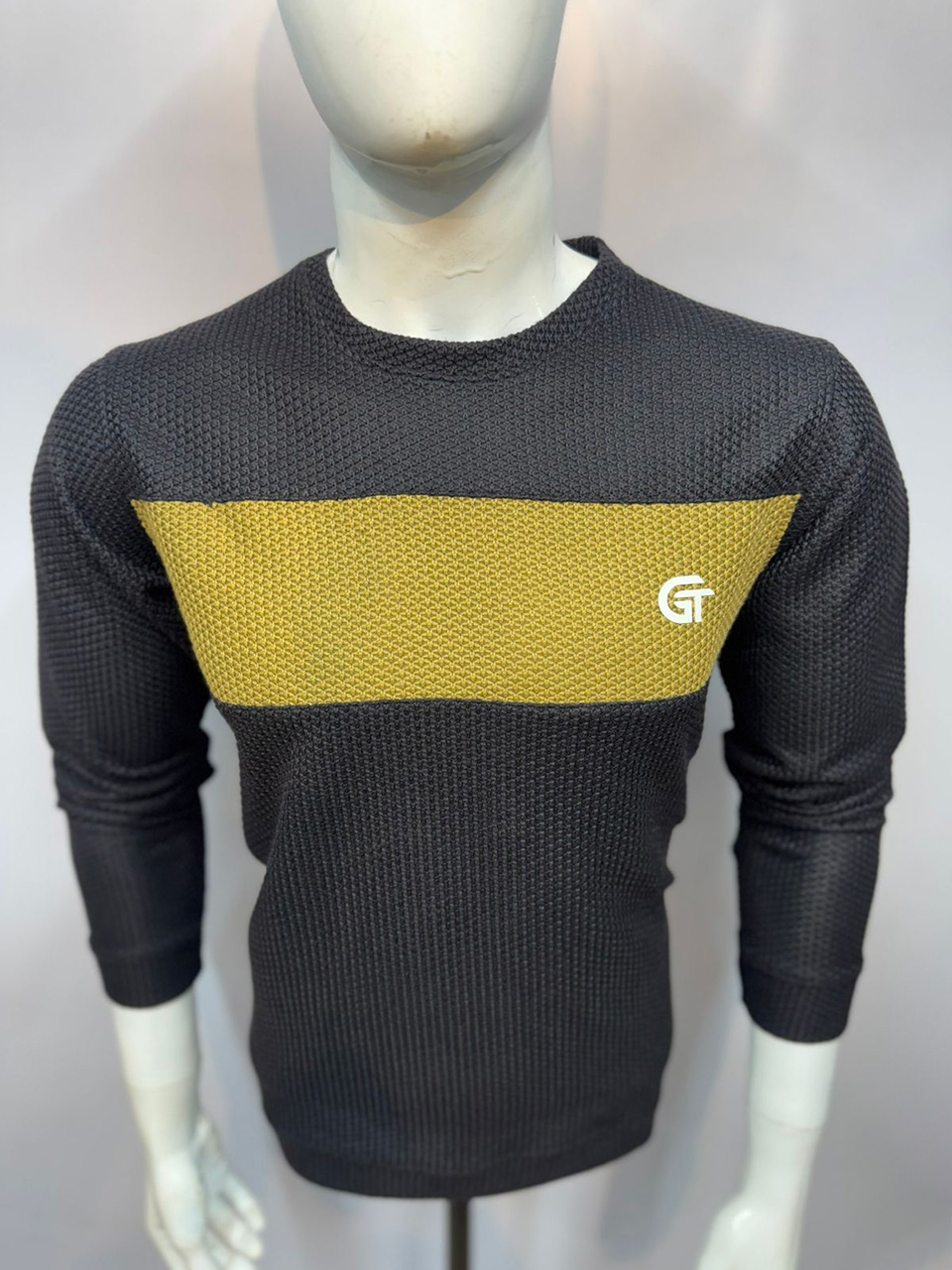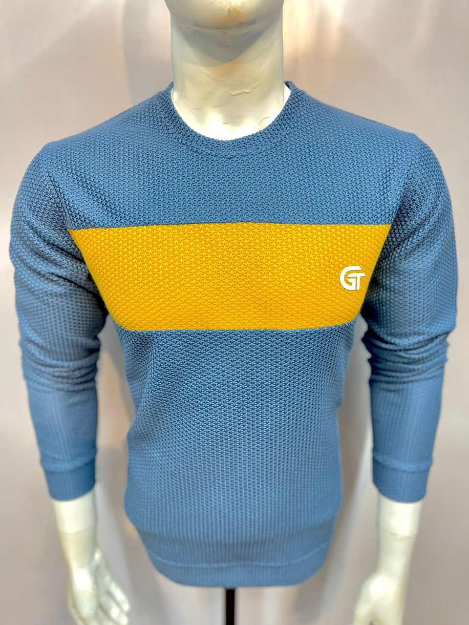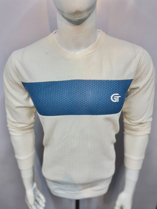 Upgrade your casual wardrobe with this premium textured knit sweatshirt designed for style and comfort. Crafted from soft, breathable fabric, it features a modern waffle-textured pattern, a white contrast panel across the chest, and a stylish GT logo print. The round neck and full sleeve design ensure a relaxed yet trendy look, making it ideal for casual outings, college wear, or weekend fashion.