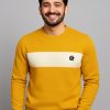 Trendy men’s textured sweatshirt with a stylish white contrast chest panel and round neck design, perfect for casual wear, outings, and everyday fashion.