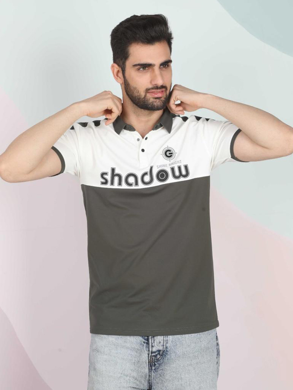 The standout “Shadow – Shine Bright” high-density rubber print adds attitude and style to your everyday look, while the smart polo collar and three-button placket give it a refined edge. The premium cotton-poly blend ensures all-day comfort and breathability.
