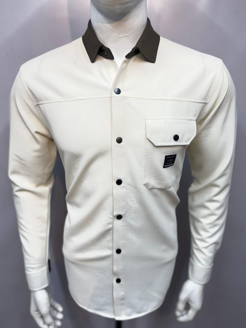 The simple yet stylish chest pocket is secured with a snap closure, adding a practical touch. Ideal for layering or wearing alone, this shirt is made for those who appreciate minimalist style with a dash of edge. The black snap buttons provide a contemporary touch, while the breathable, lightweight fabric ensures comfort throughout the day.